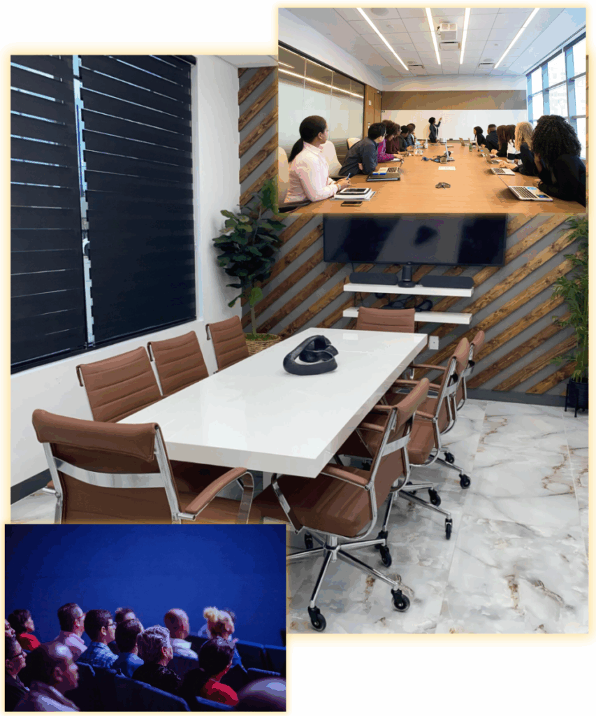 Conference Room 108 up to 50 guest. Purpose-designed rooms with whiteboards, screens, and flexible layouts—perfect for workshops, seminars, or onboarding sessions.
